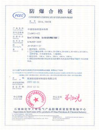 石油化工行业自限温伴热带防爆及格证